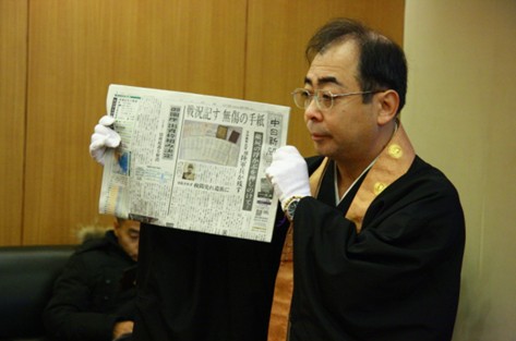 圖為日本名古屋市“兩尊觀音思考會”訪華團代表、真宗大谷派圓光寺住持大東仁先生捐贈在日本征集文物史料