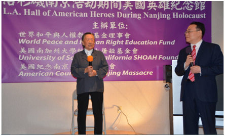 ????在見面會上,夏淑琴老人回憶說,南京大屠殺當年她才8 歲,全家老老小小及房東一家共13 口人。“我們本來是一個非常幸福的家庭。就在1937 年12 月13 日那天, 我們家里突然闖入一伙日本人,我的父親開門時就被當場殺死。我們一家有5 姐妹,最大的姐姐15 歲, 二姐13歲,我還有一個4 歲的妹妹和一個1 歲的妹妹。我的大姐被強奸,死在床上,我的二姐也被強奸死在桌子上,我被捅了3刀, 一下就疼暈過去。醒來后,渾身是血,發現家里的人除了我的4 歲的妹妹在我身邊還活著,其它人都死了。我看到媽媽抱著1 歲的妹妹死在桌子底下。”說起往事,夏老人依然忍不住潸然淚下。夏老特別對當年救助過她的美國人表示了感謝,并向現場來賓深深鞠躬。儀式最后,洛杉磯當地華人代表向夏淑琴老人送上了一本榮譽書,榮譽書上寫著“民族的英雄 歷史的見證”。