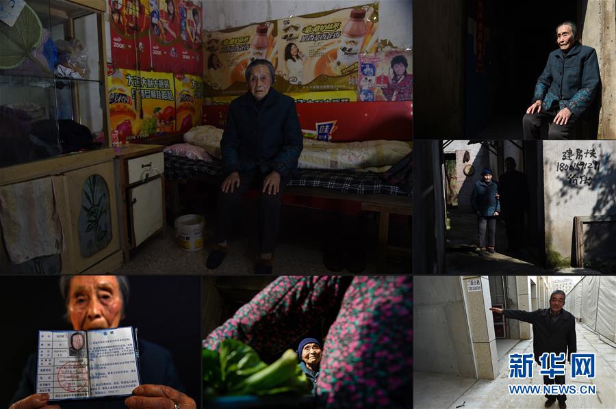 ????祝四孜,1920年6月3日出生。1937年冬,祝四孜居住的南京珠江鎮(zhèn)西門外朱莊村遭日軍洗劫,她家8間瓦房全被燒毀,她和家人藏在屋后菜園地洞內(nèi)躲過一劫。祝四孜在自己臥室中(2016年11月3日攝)(左上);祝四孜在自家門口曬太陽(2016年11月3日攝)(右上);祝四孜在兒子的攙扶下出門散步(2016年11月3日攝)(右中);祝四孜展示自己的南京大屠殺幸存者證書(2016年11月3日攝)(下左);祝四孜和洗菜路過的村鄰聊天(2016年11月3日攝)(下中);祝四孜兒子伏寶鑫指認(rèn)當(dāng)年老人避難的地方,現(xiàn)在已成為商家的門面房(2016年11月3日攝)(下右)。 1937年12月侵華日軍制造的南京大屠殺,使30多萬手無寸鐵的中國平民和放下武器的士兵慘遭殺害,給劫后余生的幸存者留下了終身難以撫平的傷痛和苦難記憶。南京大屠殺幸存者是那段慘痛歷史的“活證”。79年歲月流逝,在世者已經(jīng)越來越少。2016年11月26日,89歲的張福智老人離世后,在冊的南京大屠殺幸存者僅剩108位。第三個(gè)國家公祭日到來之際,新華社記者選取部分具有代表性的南京大屠殺幸存者,用影像記錄他們的傷痛記憶和生活現(xiàn)狀,以銘記南京大屠殺中所有無辜受難者。新華社記者韓瑜慶、李響攝影報(bào)道