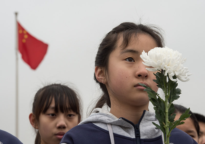????12月13日,北京十一學校實驗中學的學生代表在中國人民抗日戰爭紀念館參加國家公祭日悼念活動。 12月13日是南京大屠殺79周年紀念日,也是第3個南京大屠殺死難者國家公祭日,各界代表、抗戰親屬在中國人民抗日戰爭紀念館舉辦紀念活動,共同悼念南京大屠殺死難者和所有在日本帝國主義侵華戰爭期間慘遭日本侵略者殺戮的死難同胞。 新華社記者 羅曉光 攝