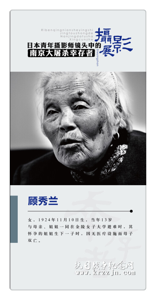 ????顧秀蘭,出生于1924年11月10日,今年93歲,南京大屠殺幸存者。