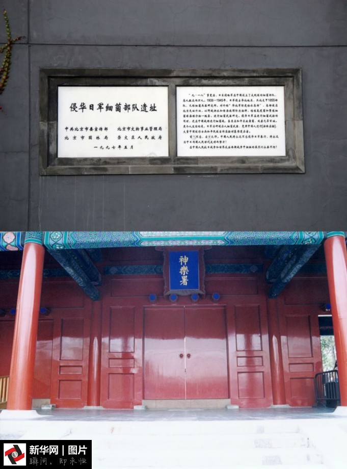 ????拼版照片上圖為:“2005年10月30日,北京天壇公園,侵華日軍細菌部隊遺址。下圖為:2005年7月2日,北京市天壇神樂署正門。