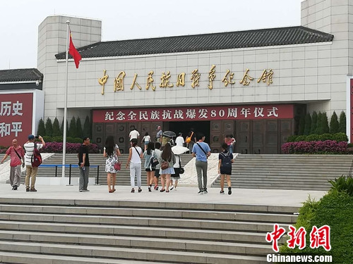 正準(zhǔn)備進(jìn)入中國(guó)人民抗日戰(zhàn)爭(zhēng)紀(jì)念館參觀的人們。上官云 攝