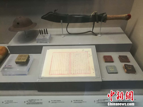 ????在中國(guó)人民抗日戰(zhàn)爭(zhēng)紀(jì)念館展出的第29軍士兵在盧溝橋抵抗日軍時(shí)使用過的大刀等物品。上官云 攝