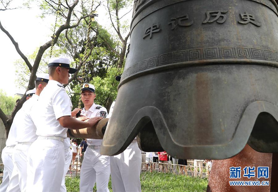 ????8月13日,海軍官兵在上海淞滬抗戰(zhàn)紀(jì)念公園撞響“和平鐘”。當(dāng)日,全民族抗戰(zhàn)爆發(fā)80周年暨“八一三”淞滬抗戰(zhàn)80周年紀(jì)念活動在上海市的淞滬抗戰(zhàn)紀(jì)念公園舉行。抗戰(zhàn)老兵代表、海峽兩岸抗戰(zhàn)史研究專家學(xué)者、抗戰(zhàn)將領(lǐng)后代、駐滬部隊(duì)官兵、社區(qū)居民以及學(xué)校師生等500多位各界代表參加活動,緬懷在抗戰(zhàn)中英勇犧牲的英烈。新華社記者 陳飛 攝