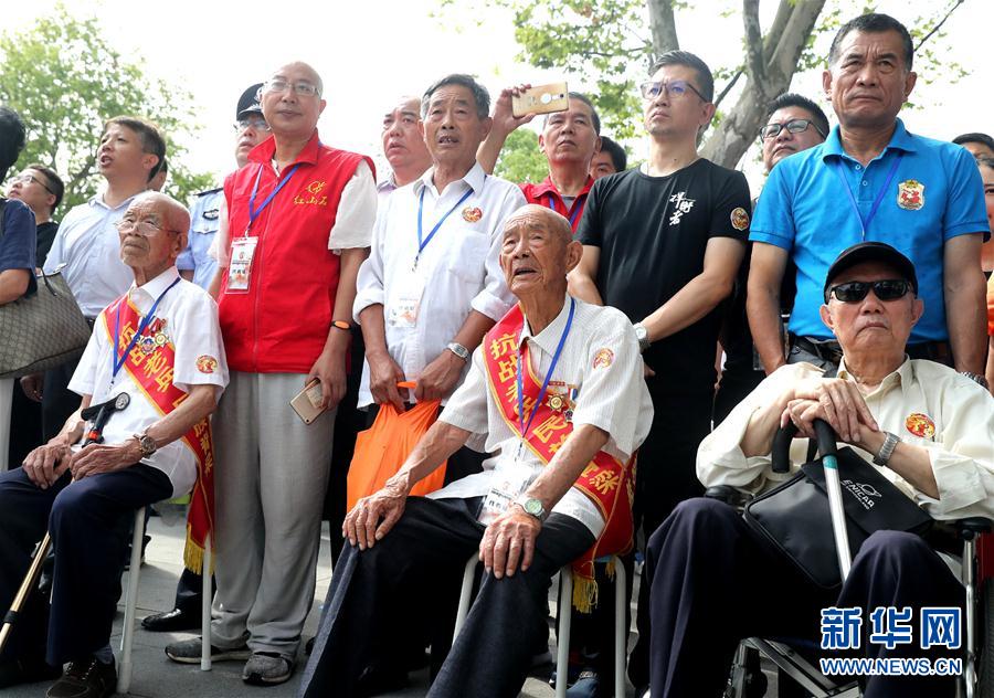 ????8月13日,幾位抗戰(zhàn)老兵在上海淞滬抗戰(zhàn)紀(jì)念公園參加紀(jì)念活動。當(dāng)日,全民族抗戰(zhàn)爆發(fā)80周年暨“八一三”淞滬抗戰(zhàn)80周年紀(jì)念活動在上海市的淞滬抗戰(zhàn)紀(jì)念公園舉行。抗戰(zhàn)老兵代表、海峽兩岸抗戰(zhàn)史研究專家學(xué)者、抗戰(zhàn)將領(lǐng)后代、駐滬部隊(duì)官兵、社區(qū)居民以及學(xué)校師生等500多位各界代表參加活動,緬懷在抗戰(zhàn)中英勇犧牲的英烈。新華社記者 陳飛 攝