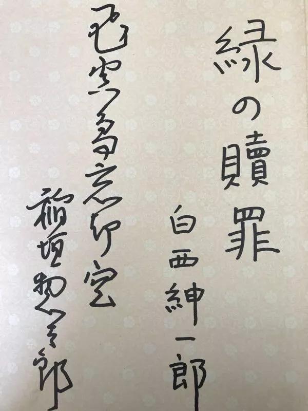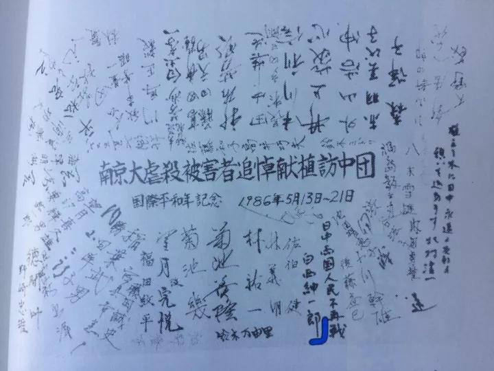 ????1993年3月28日,日中協會常務理事林祐一先生率領的日本“第8次悼念南京大屠殺受害者植樹訪華團”一行28人,來紀念館舉行悼念活動。時任該團秘書長的白西紳一郎題寫了“綠之贖罪”留言。