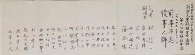 1994年訪中團集體簽名,題寫“前事不忘后事之師”