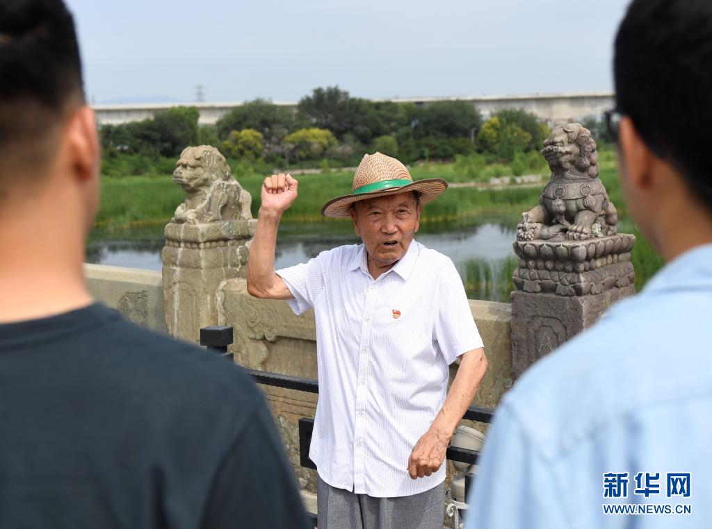 ????在基層崗位退休后,鄭福來(lái)并沒(méi)有閑下來(lái)。作為盧溝橋抗戰(zhàn)的“活歷史”,他成為一名抗戰(zhàn)史的“義務(wù)講解員”,為來(lái)往游客介紹著橋上的碑文和自己的親身經(jīng)歷。因年事已高,鄭福來(lái)需要扶著欄桿站立講解,但他不懼風(fēng)吹日曬,每每講到動(dòng)情處,往往情不自禁用力拍打欄桿,只為讓更多人知曉那段歷史。“曾經(jīng)遇到過(guò)一些日本游客不認(rèn)同我的講解,但盧溝橋這座橋本身就是歷史的見(jiàn)證,這是誰(shuí)也無(wú)法抹去的歷史證據(jù),足以反駁那些不認(rèn)同這段歷史的人。”
