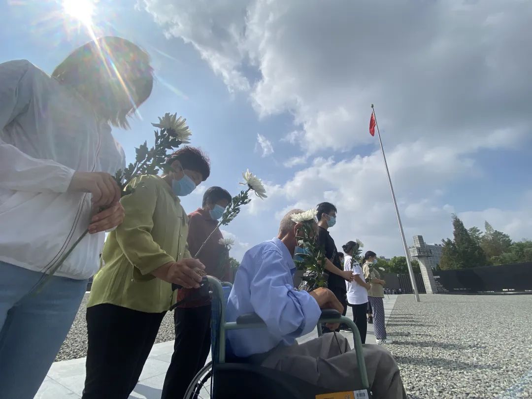 ????上午10點,在南京民間抗日戰爭博物館前來參觀的市民自發默哀。
