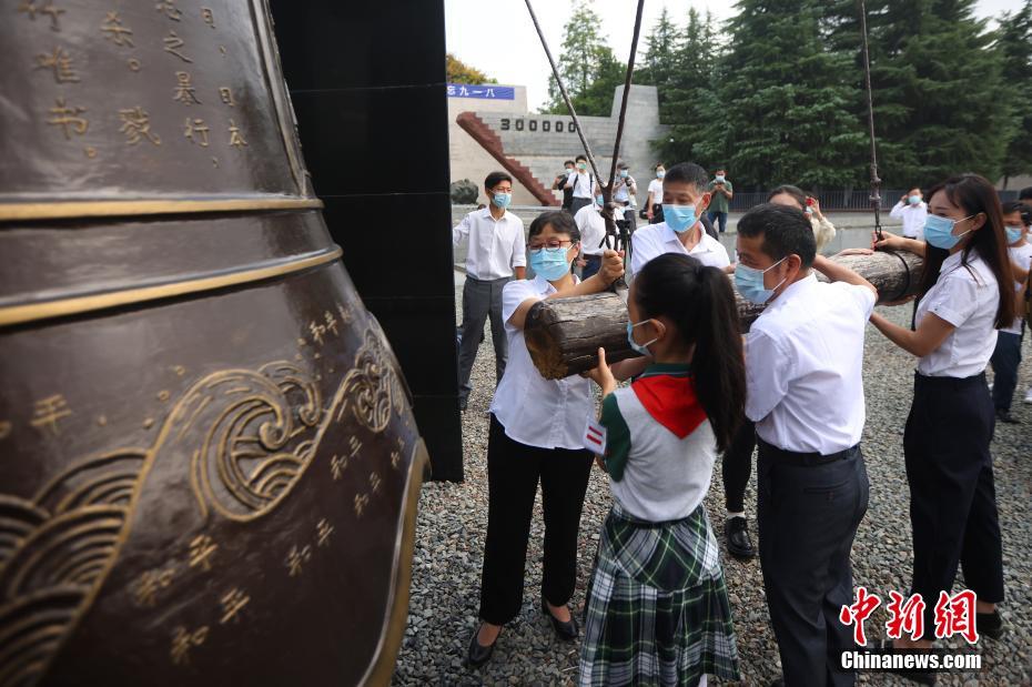 ????9月18日,九一八事變爆發91周年紀念日。當日,侵華日軍南京大屠殺遇難同胞紀念館舉行“銘記歷史 勿忘九一八”主題教育活動,南京大屠殺幸存者后代、抗戰老戰士后代、南京市青少年代表撞響和平大鐘,警醒世人銘記歷史、不忘過去、珍愛和平。 中新社記者 泱波 攝