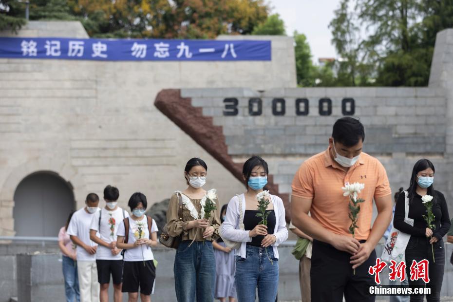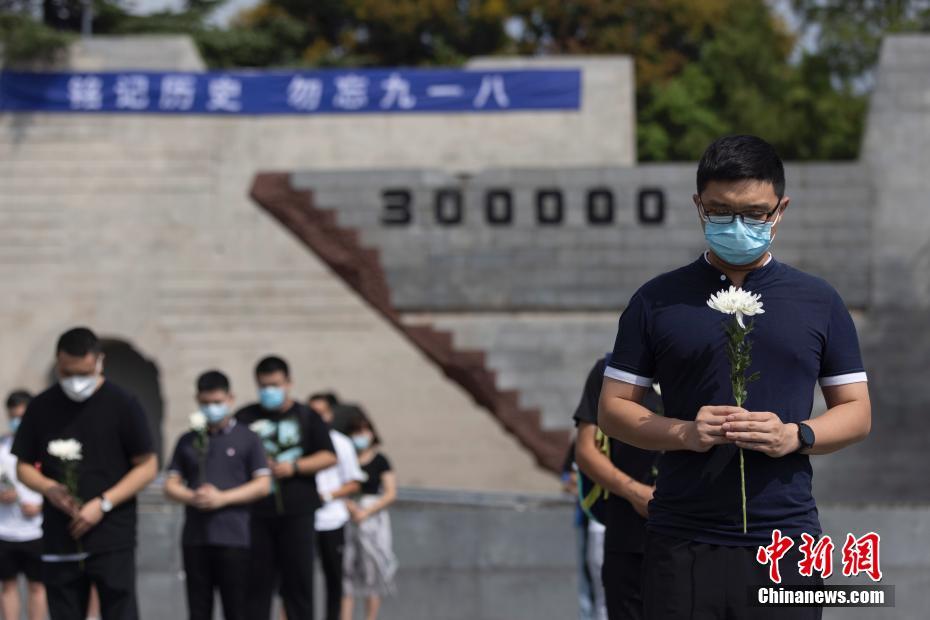 ????9月18日,九一八事變爆發91周年紀念日。當日,侵華日軍南京大屠殺遇難同胞紀念館舉行“銘記歷史 勿忘九一八”主題教育活動,隨著防空警報聲的響起,民眾手持鮮花默哀,緬懷遇難同胞。 中新社記者 泱波 攝