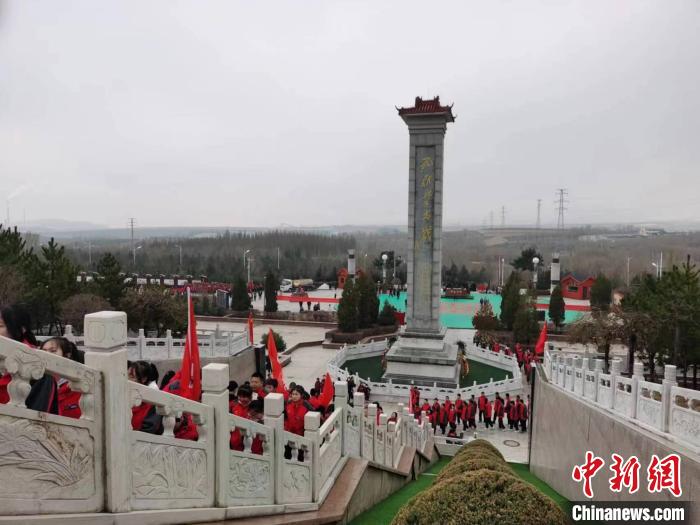??? 4月5日,山西省朔州市平魯區,來自李林中學的學生、老師來到李林烈士陵園,開展清明祭掃活動?!±盍至沂苛陥@供圖?