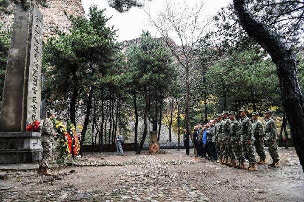 ????官兵們向在黃崖洞保衛戰中犧牲的革命先烈致以深切哀思和崇高敬意。