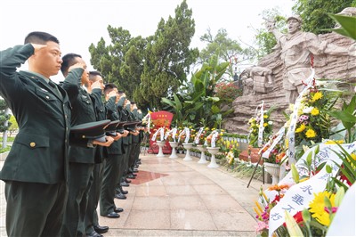 ????4月4日,第73集團(tuán)軍某旅組織官兵赴福建省廈門市鼓浪嶼英雄山革命烈士陵園祭奠先烈。