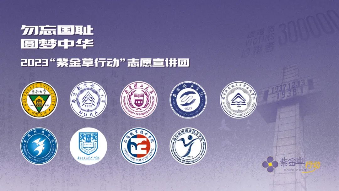 ?? 勿忘國恥,圓夢中華。11月28日2023“紫金草行動”在南京航空航天大學正式啟動,通過播放紀錄片、志愿宣講課,以及線上新媒體產品互動等方式引導大家緬懷歷史、珍惜和平。
