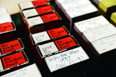 ????美國《紐約時報》微縮膠片(1937年1月至1938年12月,畫面中為其中部分膠片)。