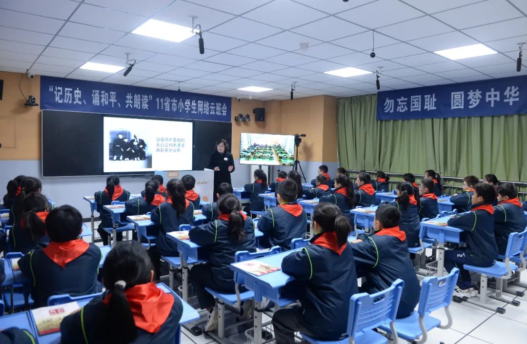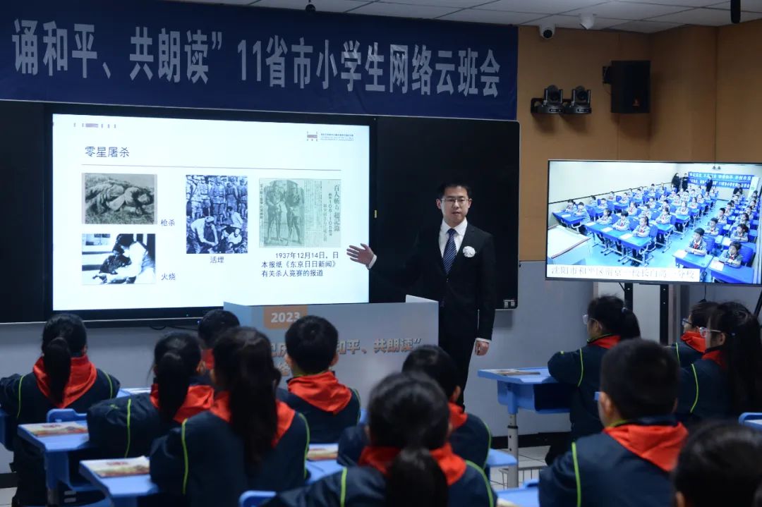 ????在第十次南京大屠殺死難者國家公祭儀式開始前,2023“記歷史、誦和平、共朗讀”網絡云班會在這里舉行,來自遼寧、云南、陜西、重慶等11省、市的50所小學通過云課堂同步參加。雨花臺區實驗小學的國際友好學校——意大利馬爾凱國際中文學校、德國九州中文學校、西班牙文心書院等也參與了本次活動。