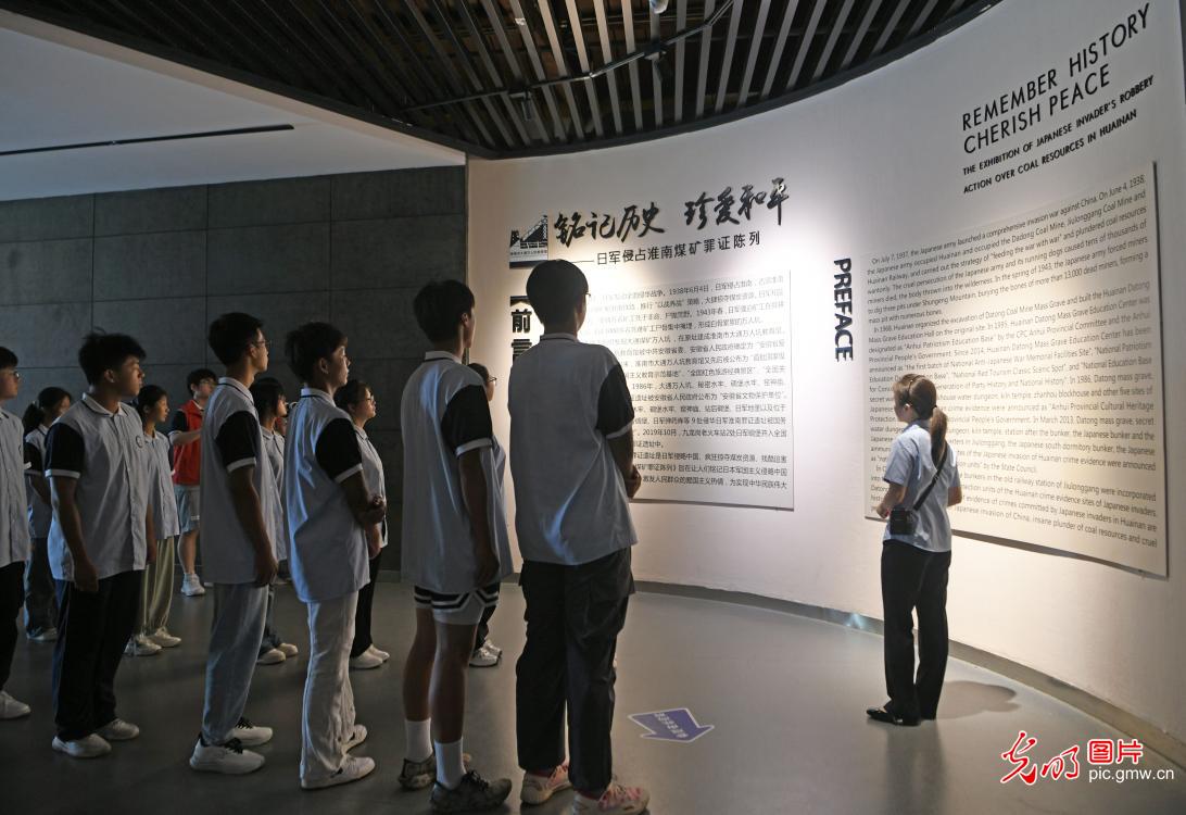 2024年9月3日,安徽省淮南第四中學學生在淮南市大通“萬人坑”教育館參觀。(陳彬攝/光明圖片)